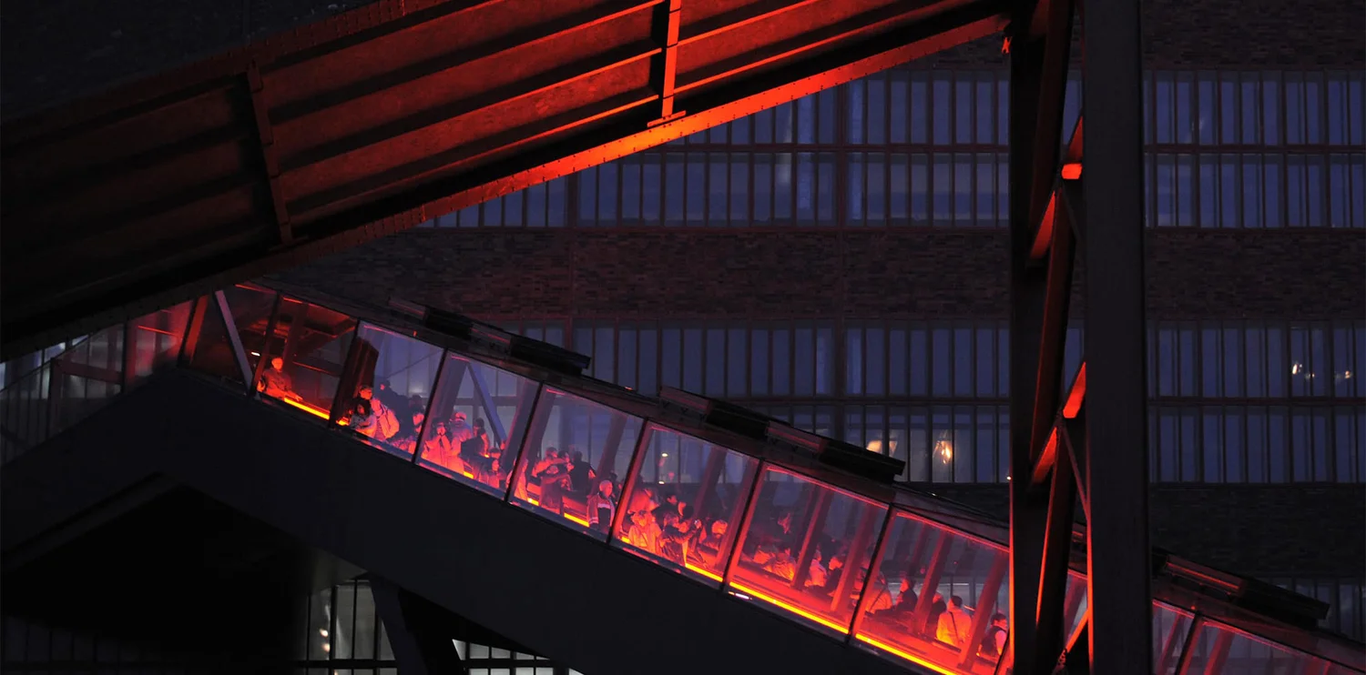 Seit Herbst 2019 genießen die Gäste dort die einmalige Atmosphäre zwischen dem Doppelbock-Fördergerüst und der orangefarbenen Rolltreppe.